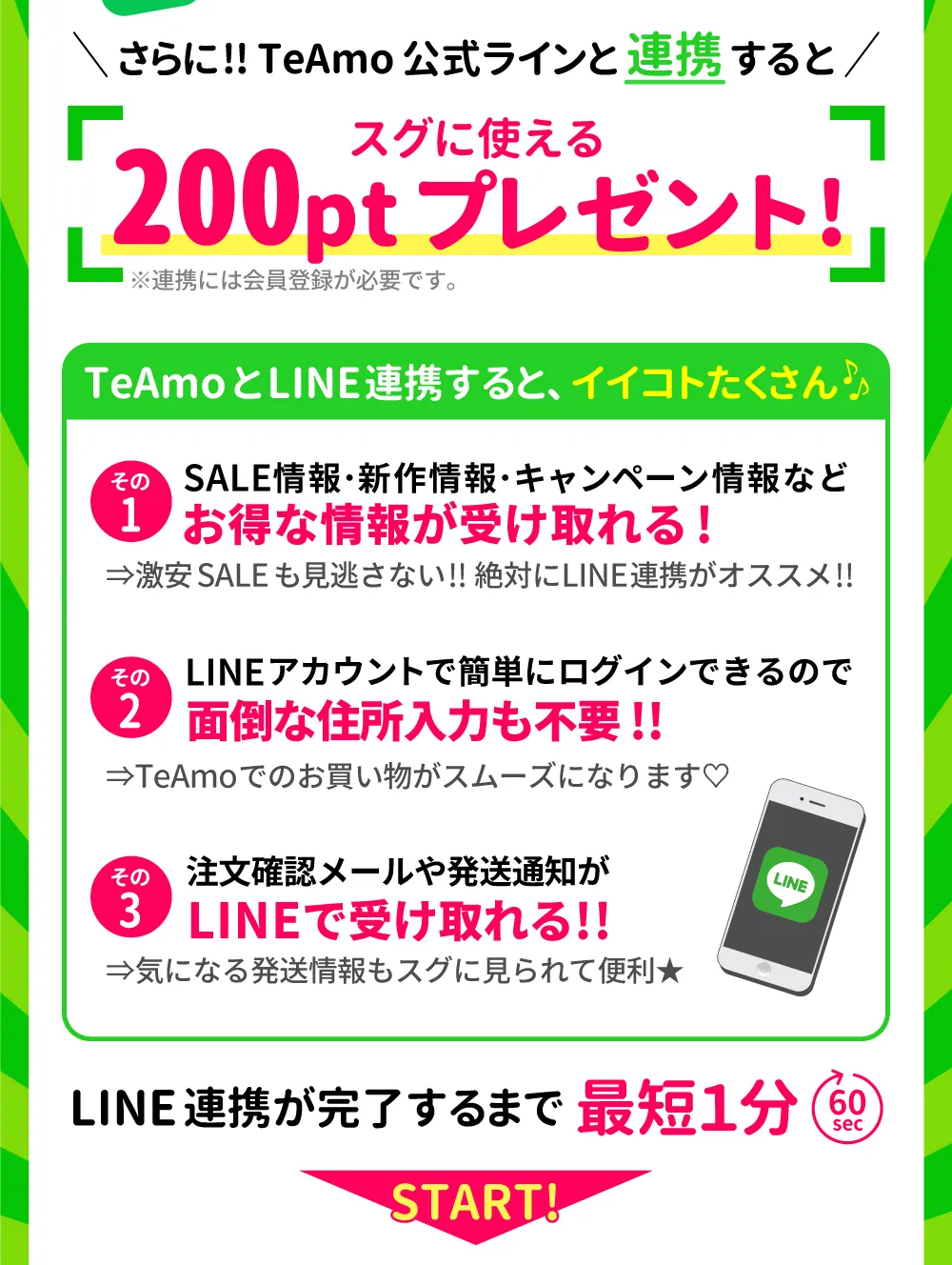 STEP1.TeAmoとお友だちになろう LINE連携ボタン