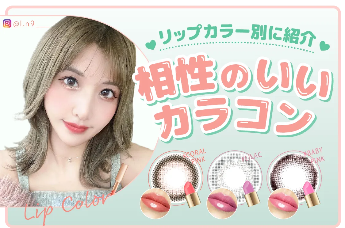 カラコンとリップのカラーリングの相性が悪いと顔色が悪くみえたり、写真が盛れなかったりするので相性の確認は必須です!