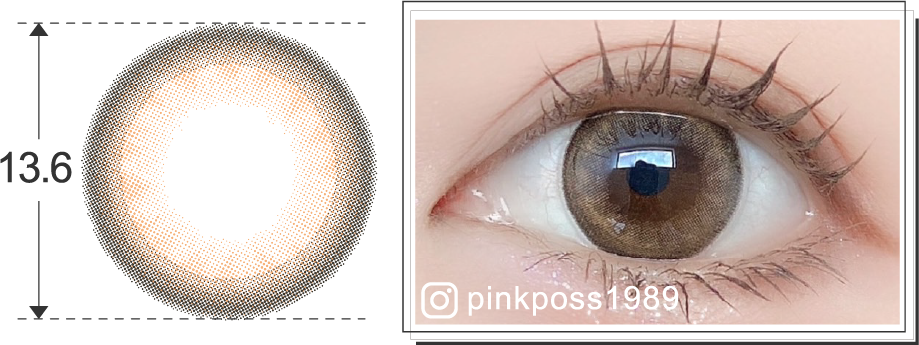半分ずつ違う色にしたことで瞳に奥行感が出るし、ツヤ感のあるドットで水光感を演出しているので、このレンズを着けるだけで一気に韓国っぽさが出せます✨