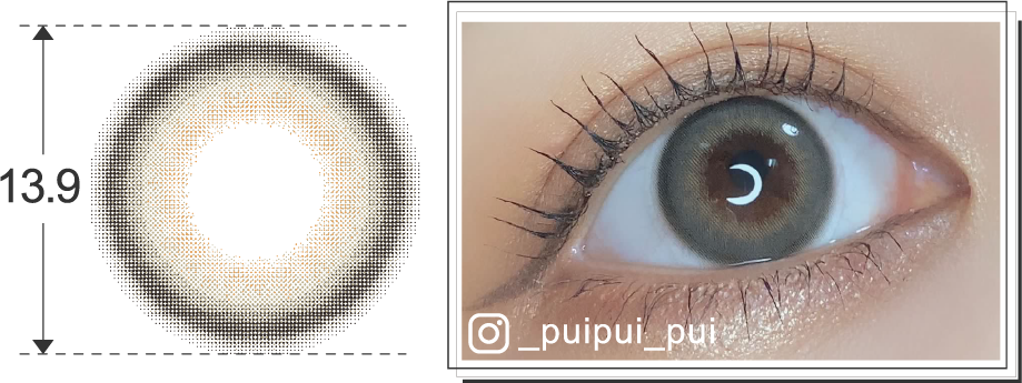 しっかりとした黒フチで目力UPができるデザインに加え、透明感が出るうるうる部分(内側)のカラーリングにこなれ感のあるベージュをチョイスすることで、着けるだけでイマドキガールになれちゃうレンズに❤