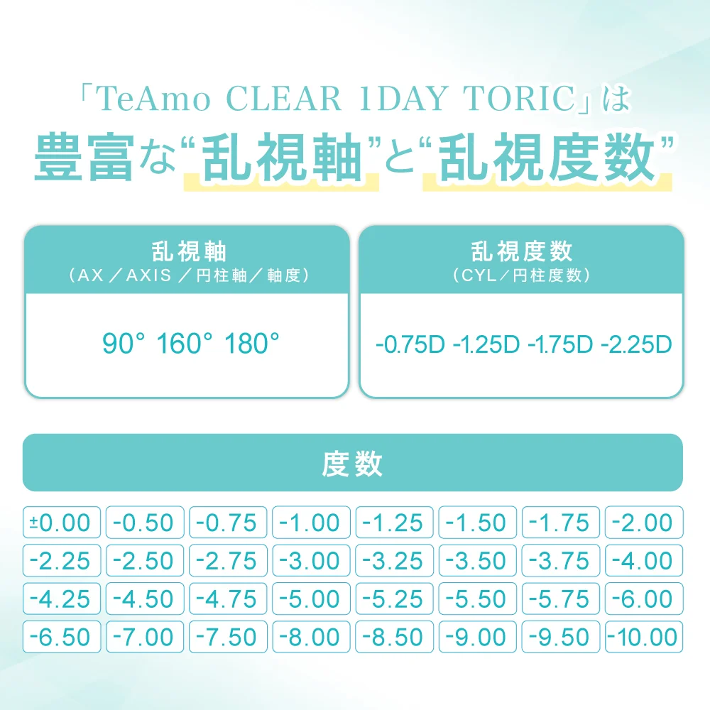 | 製品名 | TeAmo CLEAR 1DAY TORIC |